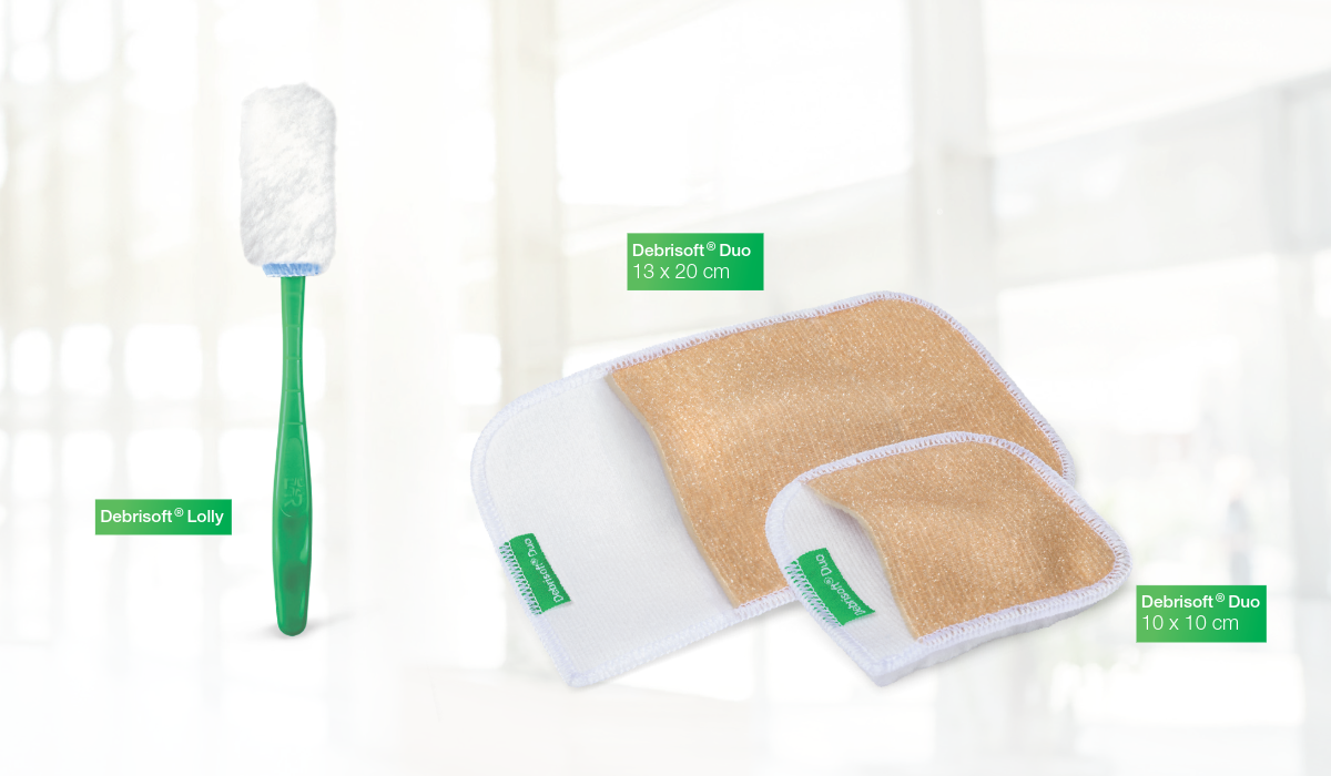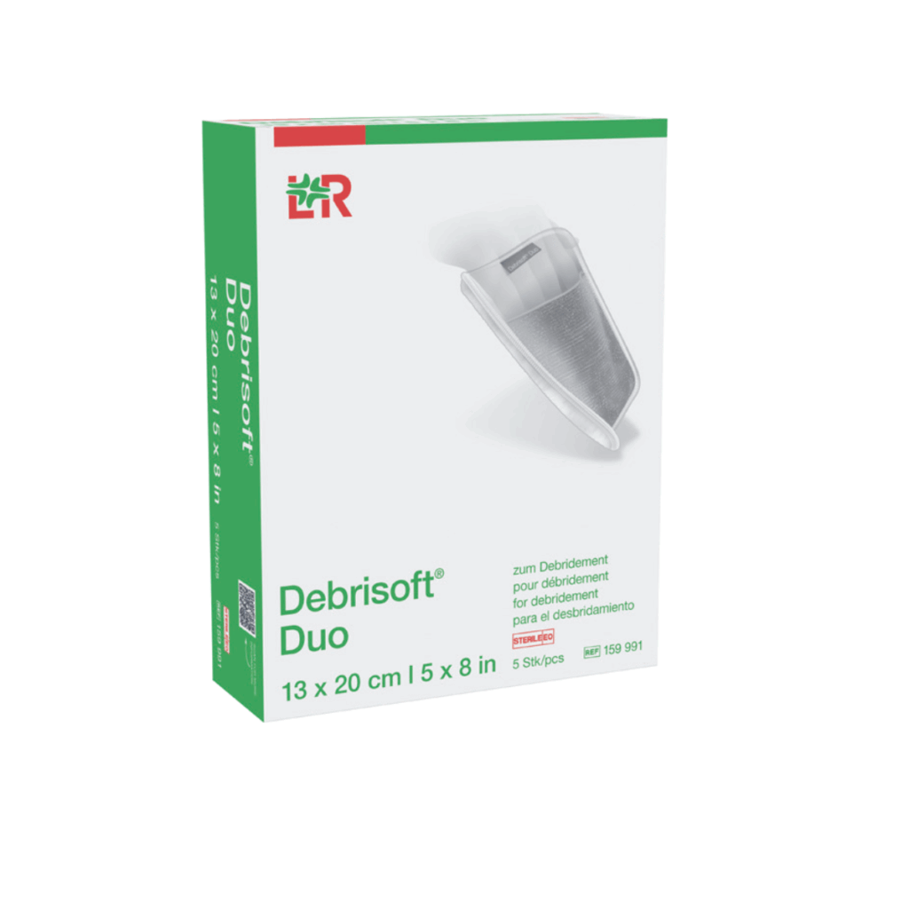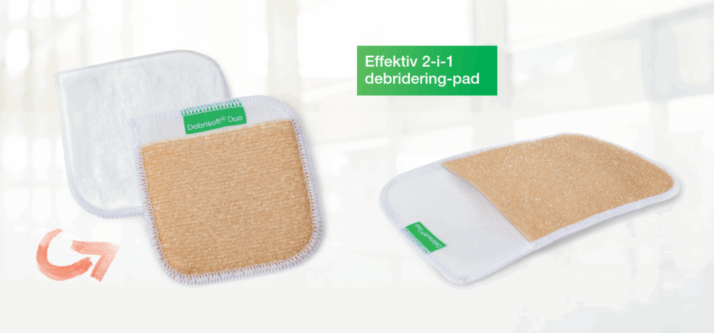 Debrisoft® Duo gør det muligt at tilpasse oprensningen efter sårets tilstand. Dette produkt kombinerer effektiv rensning med høj patientkomfort. Den dobbeltsidede Debrisoft Duo pad har:
