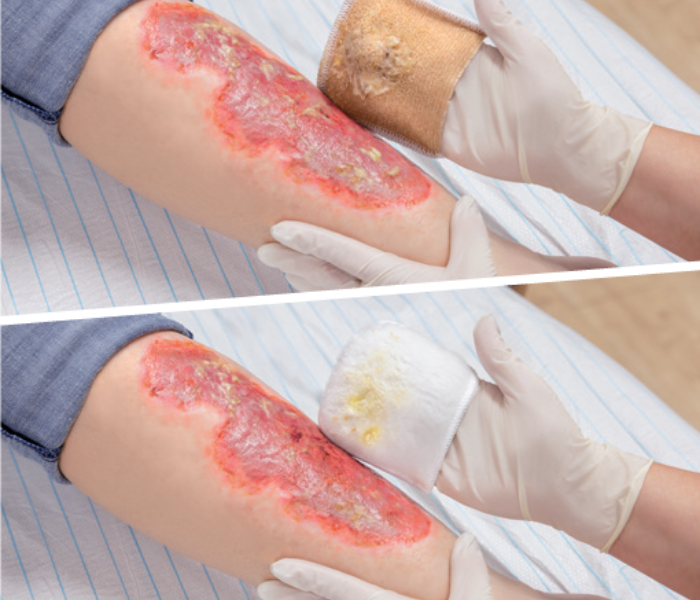 Efter såret er renset og rent, vælges relevante sårbehandlingsprodukter.
